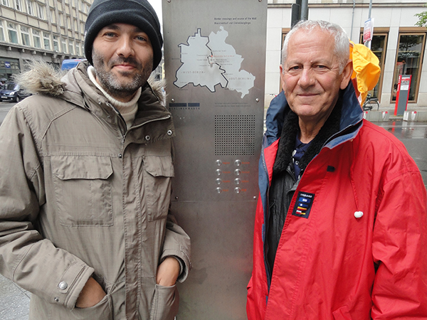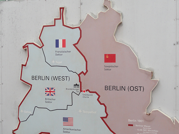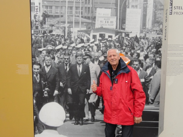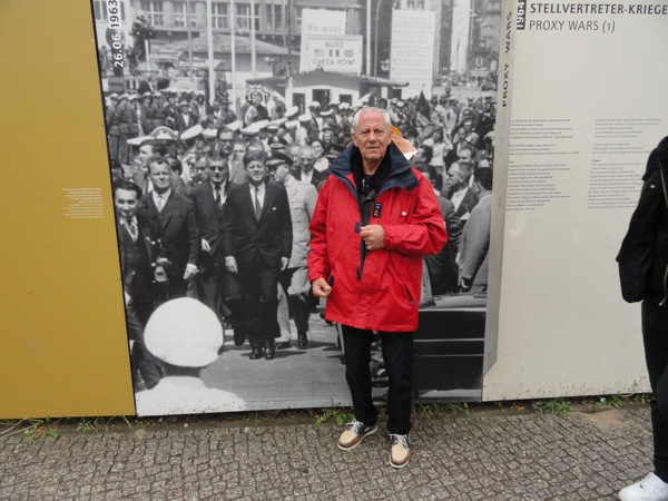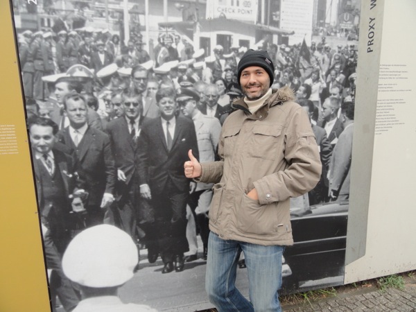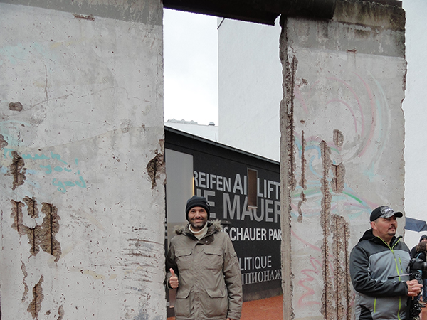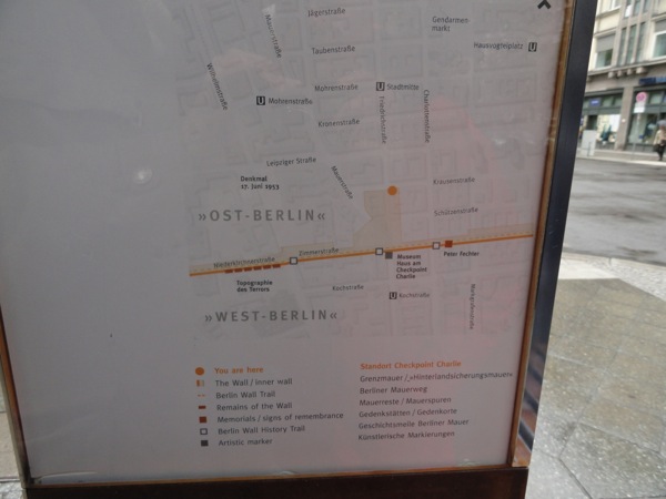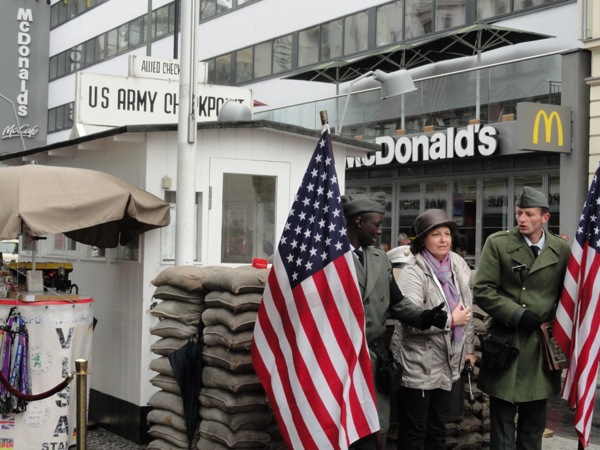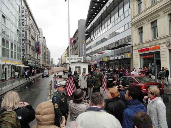 Μετά από κει, κινηθήκαμε στο Charlie's Checkpoint, το σημείο που υπήρχε το τείχος του Βερολίνου και χαζέψαμε τις ατραξιόν με τα παλιά σύνορα και τους αμερικανούς φρουρούς. Πολλά μαγαζάκια εκεί για σουβενίρ και η γραμμή που υπηρχε το τείχος, σηματοδοτημένη για να θυμίζει.