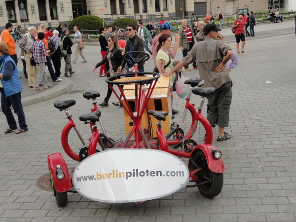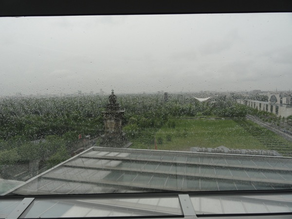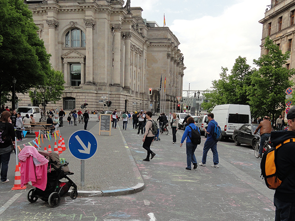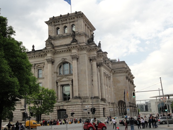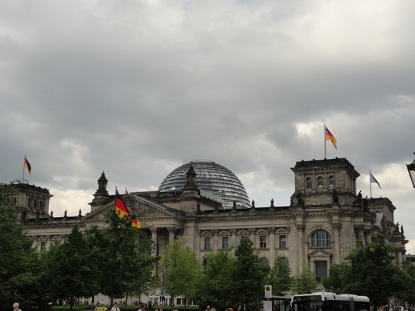 Στη συνέχεια κι αφού βρήκαμε ένα ανοιχτό εστιατόριο και γευτήκαμε ρώσικη αλά ευρωπαική εκλεκτή κουζίνα, φτάσαμε στην πύλη του Βραδεμβούργου. Μετά από αρκετές φωτογραφίες, περάσαμε δεξιά στο Ράιχσταγκ, το γερμανικό κοινοβούλιο που έκαψε ο χίτλερ κάποτε ωστε να κερδίσει την εύνοια των πολιτών. Εκεί, η είσοδος ήταν δωρεάν αλλά χρειάζεται να περιμένεις σε μια σχετικά μεγάλη ουρά ωστε να προμηθευτείς πάσο εισόδου με τα στοιχεία σου και να κλείσεις ραντεβού πότε θα μπείς. Εμείς κλείσαμε για την επομένη το πρωί, και κατευθυνθήκαμε προς potsdammer platz στο sony center περνώντας μέσα από το Tiegarten, ένα καταπληκτικό πάρκο αναψυχής.