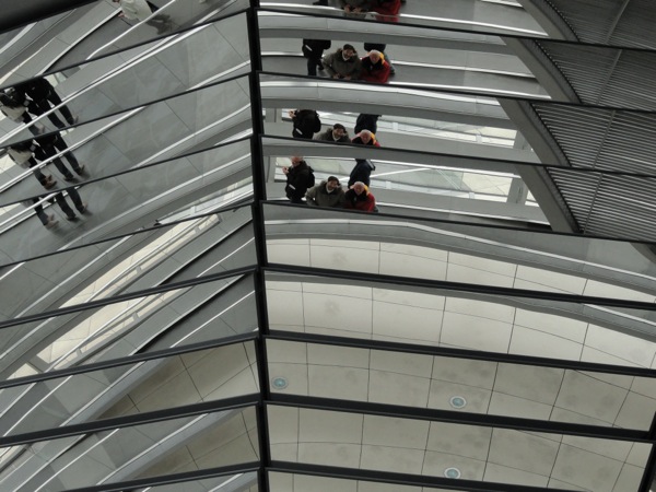 Την επόμενη μέρα,  μπήκαμε στο Reighstagh οπου περνάς ένα σωρό ελέγχους αντίστοιχους των αεροδρομίων, και σε τοποθετούν σαν τα κοτόπουλα μέσα σε ένα ανελκυστήρα μαζί με άλλουσ 35-40 , ωστε να σε ανεβάσει στο ψηλότερο σημείο. Εκεί λίγο μπορεί να τα χρειαστείς, γιατί καλύτερα συνειρμός με κοτόπουλα παρά για γερμανικό ντους με τους υπόλοιπους εβραίους. Έναν φόβο πριν ξεκινήσει το ανέβασμα, τον έχεις και αυτο καταστεί το ράιχσταγκ μια μοναδική εμπειρία :)